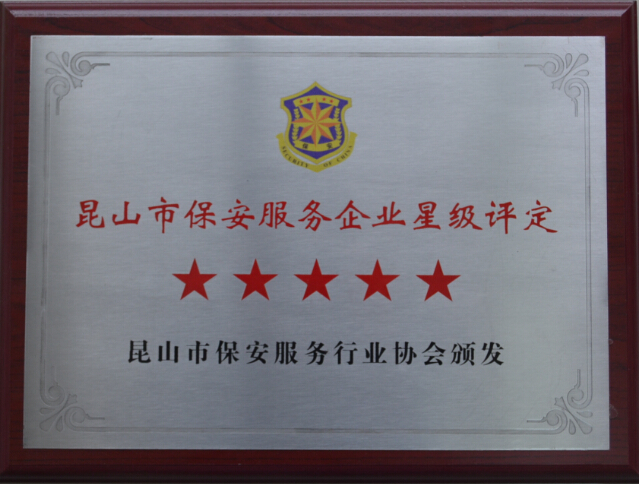 近日,在剛剛結束的保安服務企業(yè)星級評定中,保安公司以總分97.2的優(yōu)異成績獲得了“2017年度五星級企業(yè)”榮譽稱號,昆山市治安大隊、昆山市保安服務行業(yè)協(xié)會參與了此次評定工作。