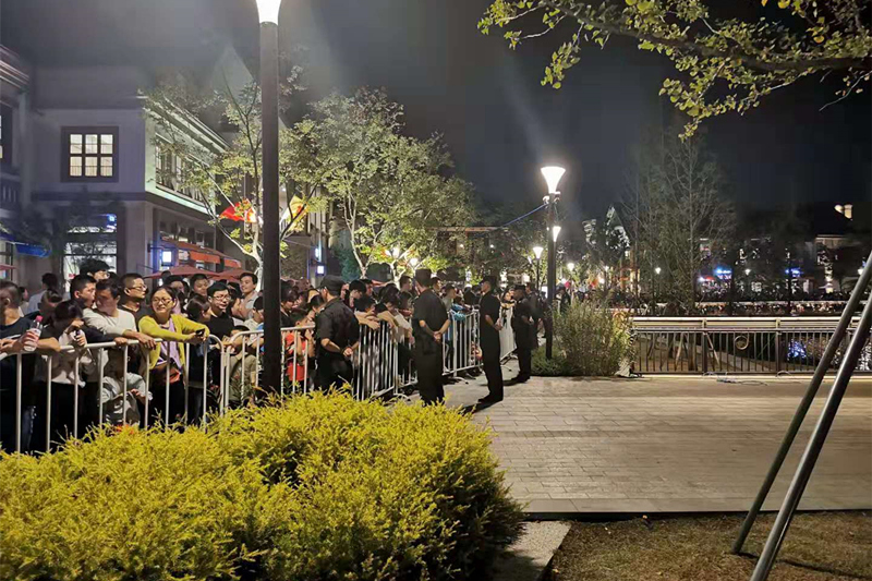 本次新中國成立70周年、昆山撤縣設(shè)市30周年煙花晚會表演定于晚上9:00,為了確保大漁灣現(xiàn)場秩序穩(wěn)定所有安保人員提前到達(dá)安保崗位,幫助工作人員在河邊豎起隔離護欄,引導(dǎo)觀眾文明觀賞,保護觀眾安全。由于現(xiàn)場觀眾多、車輛擁堵,為了維護交通秩序,公司在大漁灣外圍安排道路交通指揮隊員,對車輛進(jìn)行引導(dǎo),確保道路通暢。本次煙花晚會表演現(xiàn)場觀眾人數(shù)為以往之最,為了確保安全穩(wěn)定無事故,公司還組建應(yīng)急隊伍,全力配合公安部門工作。