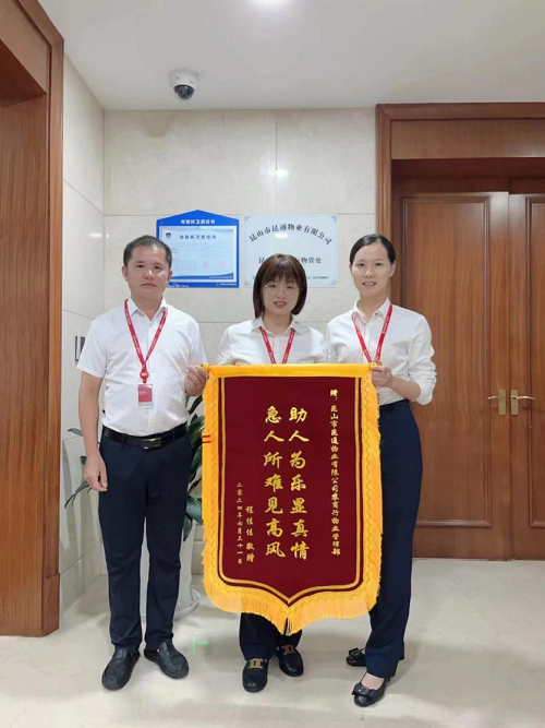 8月9日,昆通物業(yè)保安員仇國玉和楊福建像往常一樣在負責(zé)的區(qū)域巡邏,他走到南廣場快遞房門前時,一個閃閃發(fā)光的物件引起了他的注意,走近一看,竟是一只價值不菲的金手鐲。面對這意外之財,仇國玉和楊福建沒有絲毫猶豫,第一時間想到的是盡快找到失主。他們立即將金手鐲妥善保管,并向物業(yè)經(jīng)理報告了情況。隨后,通過多方努力,歷時兩天,終于聯(lián)系到了焦急萬分的失主。當(dāng)失主看到失而復(fù)得的金手鐲時,激動之情溢于言表,對仇國玉和楊福建連連道謝,并送上了一面寫有“助人為樂顯真情,急人所難見高風(fēng)”的錦旗。
