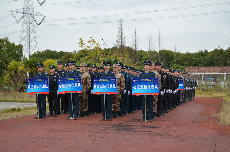 本屆保安崗位技能大比武活動(dòng)共有8個(gè)參賽隊(duì),分別是醫(yī)院、學(xué)校、銀行、軌交、公交巡檢、周莊景區(qū)保安、停車收費(fèi)及交通協(xié)管代表隊(duì),各支隊(duì)伍紛紛選派精兵參加比拼。參賽隊(duì)伍一一進(jìn)行隊(duì)列展示,評(píng)委進(jìn)行統(tǒng)一打分。在8支參賽隊(duì)伍完成會(huì)操比賽后,周莊景區(qū)代表隊(duì)進(jìn)行擒拿配套、教育系統(tǒng)安保隊(duì)進(jìn)行防恐應(yīng)急演練、交通協(xié)管代表隊(duì)進(jìn)行交通手勢(shì)操展示、培訓(xùn)中心進(jìn)行搏擊操表演,演出得到現(xiàn)場(chǎng)一致好評(píng)。最后周莊景區(qū)代表隊(duì)以90.2分的高分摘得此次技能大比武桂冠。