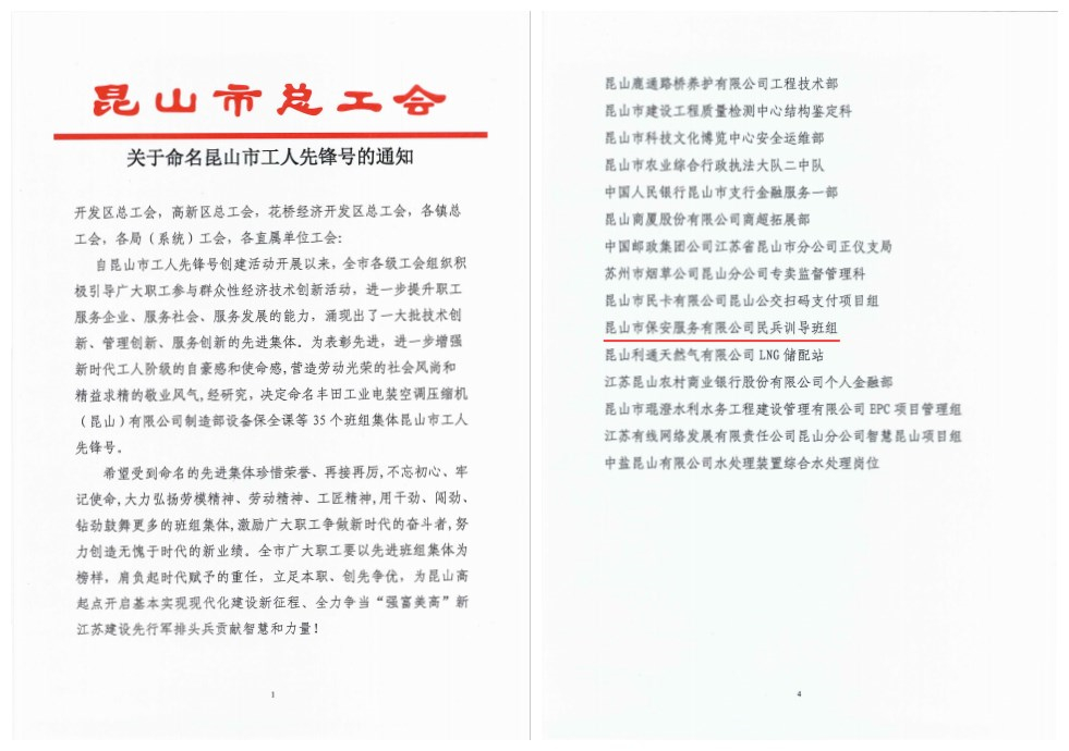 保安公司榮獲昆山市“工人先鋒號(hào)”榮譽(yù)稱(chēng)號(hào)