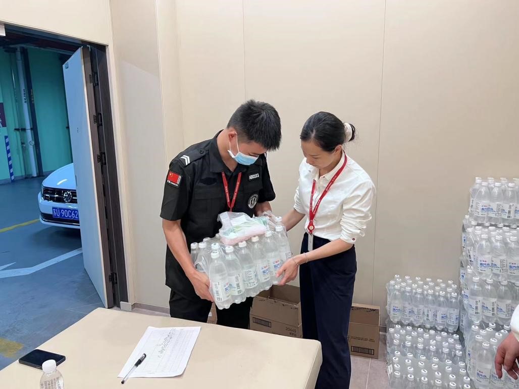 驕陽似火、酷暑難耐,為切實保障昆通物業(yè)一線工作人員的生產(chǎn)安全和身心健康。8月18日,安保公司下屬昆通物業(yè)開展“送清涼”活動,為高溫下堅守崗位的項目人員送去防暑降溫物資。