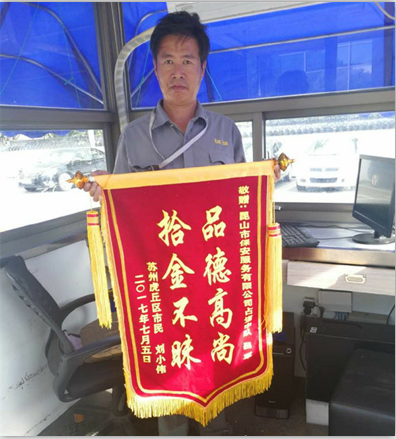 近日,保安公司停車收費中隊收到一面市民贈送的錦旗,原來是7月4日下午,停車收費員呂軍在中山路停車場巡視時,在崗?fù)じ浇鼡斓揭恢缓诎谆焐嘲?,發(fā)現(xiàn)包內(nèi)有多件電子產(chǎn)品及重要證件,隨后呂軍立即向110指揮中心報告了情況,后通過警方的幫助找到了失主,失主為了表達(dá)感激之情,特贈送了一面致謝錦旗。