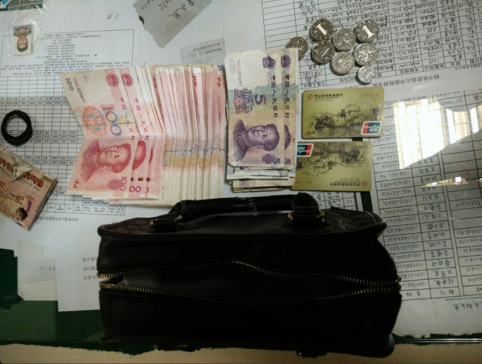 9月25日下午15:30左右,保安公司駐中醫(yī)院保安隊(duì)班長(zhǎng)張青山在與其隊(duì)員進(jìn)行例行巡邏時(shí),在門(mén)診二收費(fèi)處發(fā)現(xiàn)了一個(gè)黑色手提包,包內(nèi)有大量現(xiàn)金及銀行卡,班長(zhǎng)張青山立即向保安隊(duì)隊(duì)長(zhǎng)反應(yīng)了情況,并將手提包交于警務(wù)室保管,隨后返回了自己的執(zhí)勤崗位。