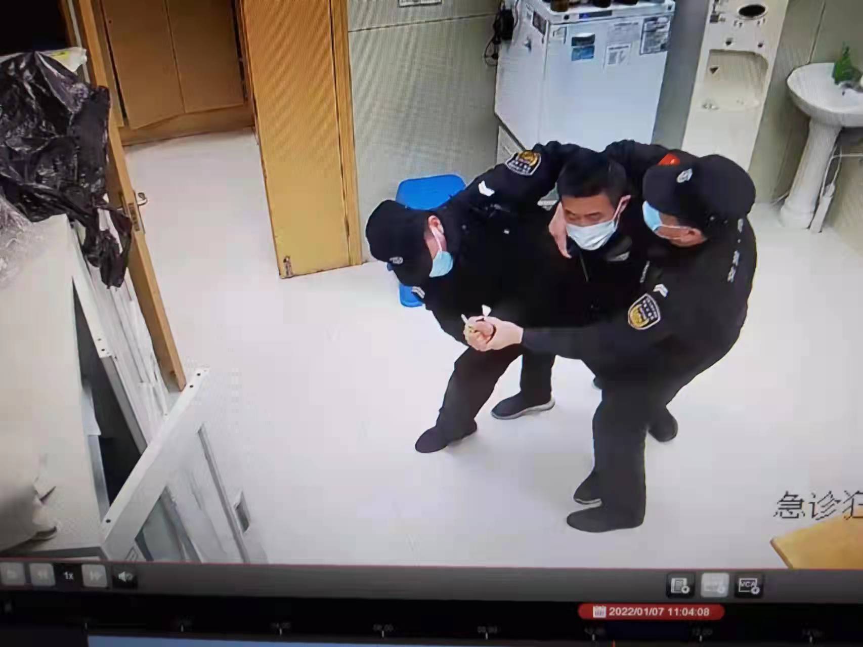 據(jù)悉,當(dāng)天上午中醫(yī)院突然出現(xiàn)一名黑衣男子沒有掛號(hào)就沖進(jìn)搶救室躺在病床上,中醫(yī)院駐點(diǎn)特勤隊(duì)員金華平發(fā)現(xiàn)后,及時(shí)上前詢問情況并將就醫(yī)流程告知了他,但此人情緒激動(dòng)且大聲呵斥金華平,為了保證和諧的就醫(yī)環(huán)境,金華平和姚建剛兩人將此人扶到搶救室外面的椅子上休息。沒想到該男子報(bào)警稱醫(yī)生拒絕給其看病,警察來(lái)后,金華平將事情經(jīng)過仔細(xì)告知,后此人就揚(yáng)言要報(bào)復(fù)金華平。十點(diǎn)半左右,黑衣人又折返醫(yī)院尾隨金華平進(jìn)搶救室并拿刀揮舞,欲進(jìn)行報(bào)復(fù),在這危急關(guān)頭,金華平憑借著日常培訓(xùn)經(jīng)驗(yàn),先后退至旁邊沒人的小房間里,并抓起一張凳子擋在身前,旁邊的姚建剛則趁黑衣人不備奮勇上前,抓住了黑衣男子拿刀的手,兩人合力擒住了此人。最后,護(hù)士報(bào)警將其帶至派出所。